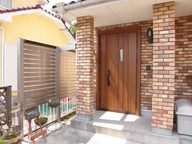 元々の煉瓦調の外壁が生かされて、素敵な玄関に仕上がりました。
