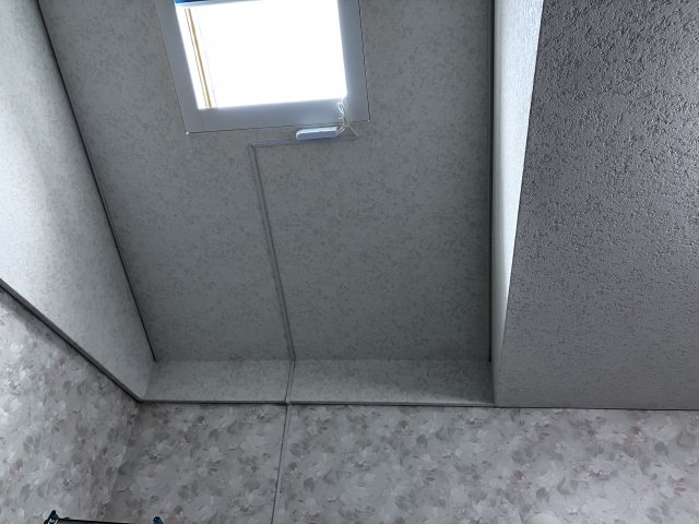 使い勝手を検討し、今回は電動を希望されました。寝室のため、開口部からの遮光をほぼ完全に遮断したく、巻取りフレームからの光の漏れを無くすため、サイドフレームを取付しました。その他の予算を抑えるため、電源コードは露出でいきました。