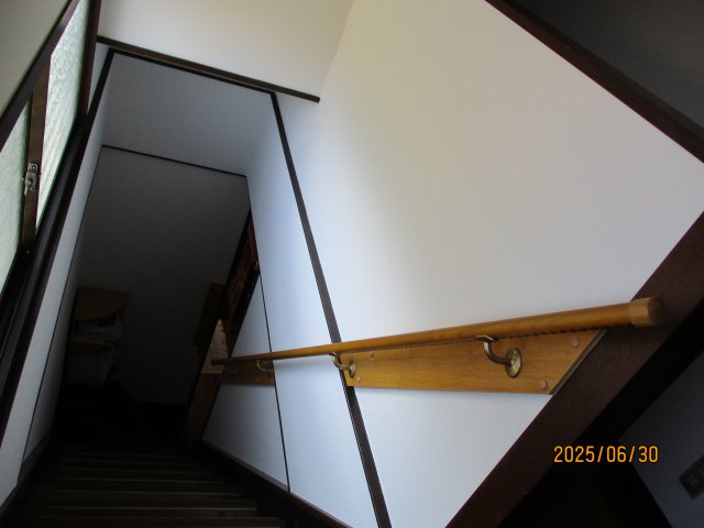 階段壁は、段差があるため手摺り用のプレートを設置して、取付。合わせてクロスも張替して一新しました。