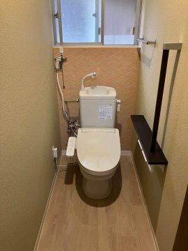 工事中も施主様御在宅なので、仮設トイレを置かせて頂き、なるだけ早く引き渡せる工期で対応させて頂きました。最後には、お父様より、お喜びの声を頂き何よりです。