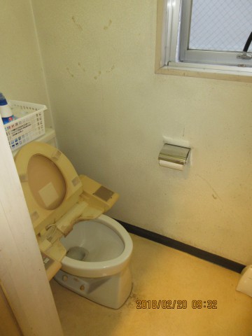 築30年を越すビル内のトイレで間仕切り壁がなく、音を気にして使用し辛かったトイレ。