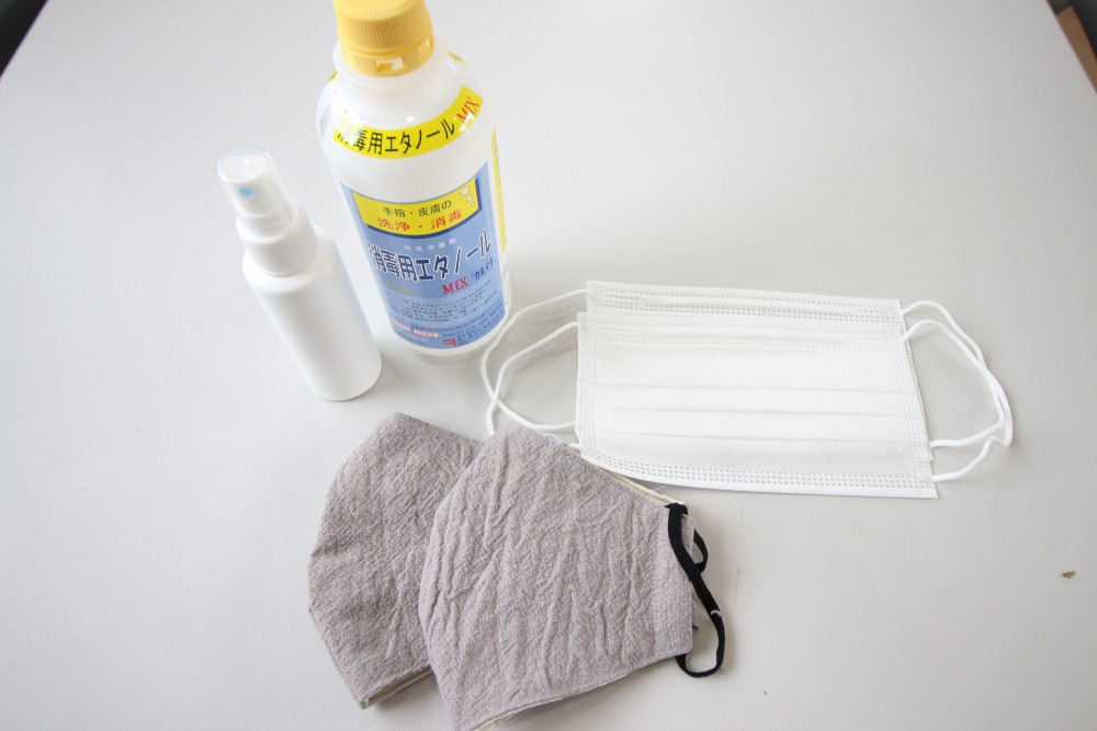 (アルコール除菌スプレー・マスクは使い捨ての他、布マスクも自社で準備しております。)