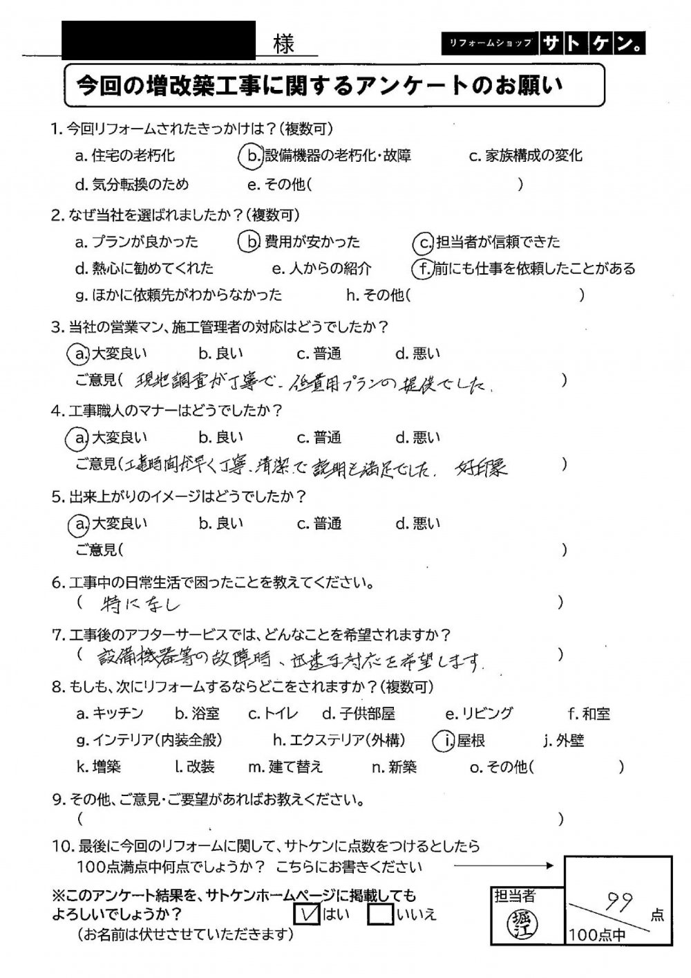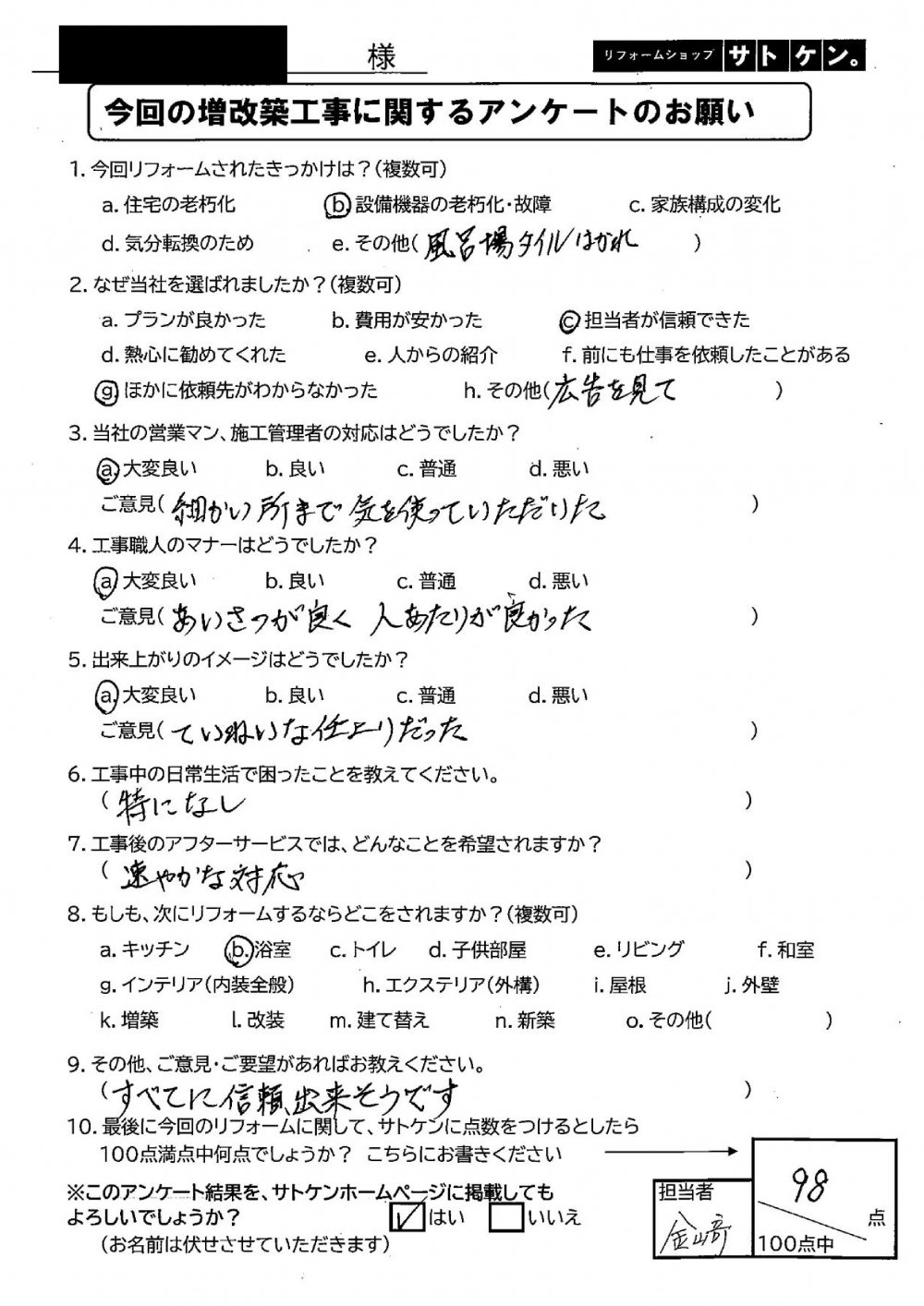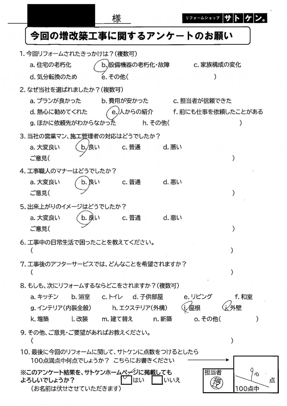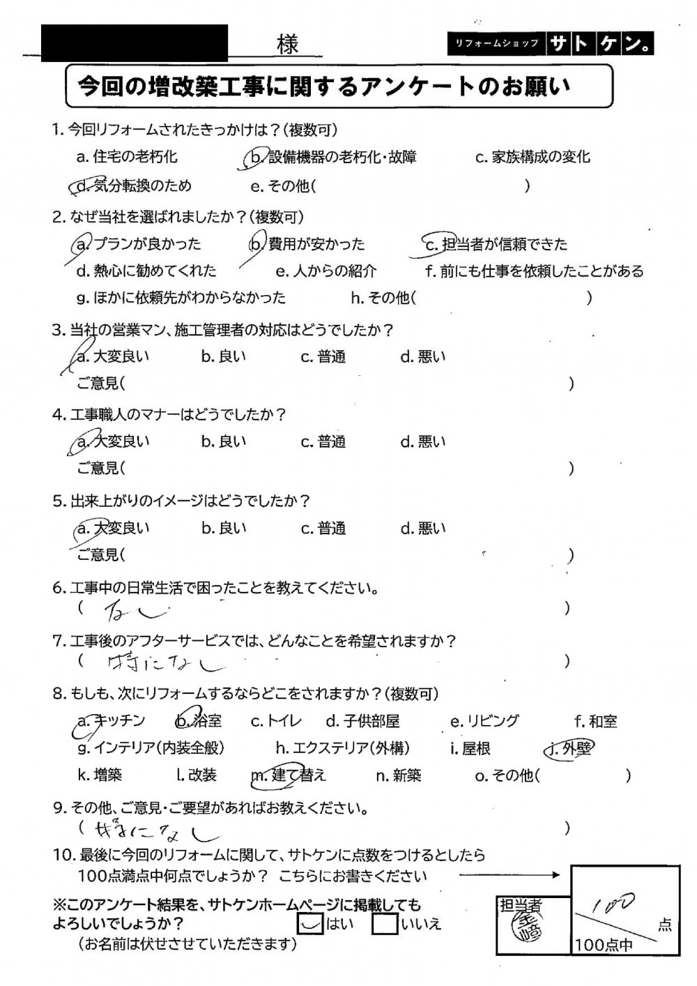 リフォームショップサトケン お客様アンケート☆第9弾☆